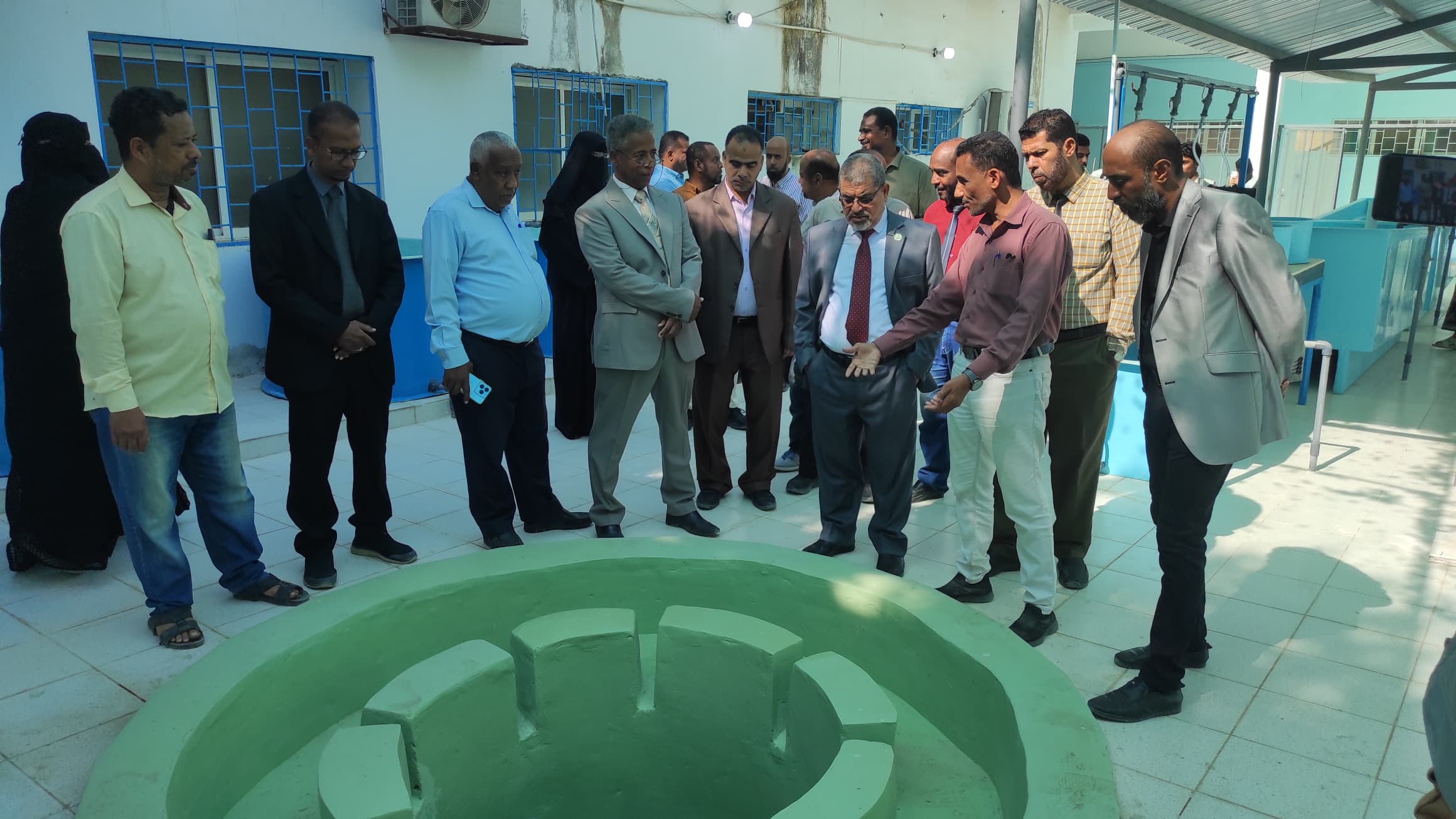 كما تفقد الضيوف مشروع المزرعة السمكية الممولة من منظمة الفاو واطلعوا على سير العمل فيها ونسبة الإنجاز التي وصلت إلى حوالي 80٪. وتم خلال الزيارة افتتاح مبنى الكلية والأقسام العلمية بعد إعادة تأهيلها خلال المدة الماضية بصورة تحمل هوية الكلية والجامعة.